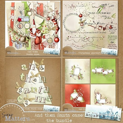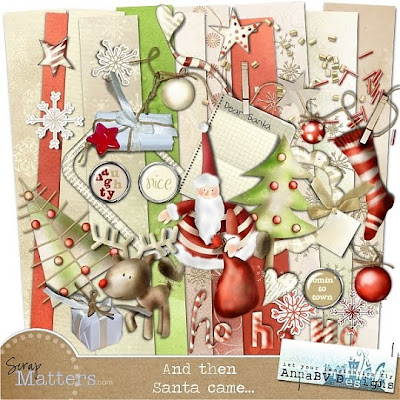 Just in time for Christmas, AnnaBV Designs has a beautiful new kit out today at ScrapMatters called And Then Santa Came. It has so many adorable elements and is perfect for scrapping Christmas memories of your little ones. There is also a free add-on, and a coordinating alpha, wordart, and quickpages. The whole set is also bundled for even bigger savings!