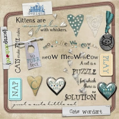 Happy Friday, everyone! My designers both have new kits out today.The first is from By Becca at ScrapMatters and is called Taste of Provence. It is designed to capture the colors and feel of traditional fabrics of Provence. Full of rich colors and detailed elements, you will reach for this kit over and over again. Kit Cat by AnnaBV Designs is being released at ScrapOrchard. It’s fun and whimsical and can be use for kitty cat pictures or anything really. It also comes with a coordinating wordart pack and quickpages.
