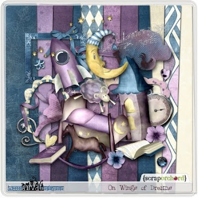 On sale today at ScrapOrchard, AnnaBV Designs is releasing her newest kit, On Wings of Dreams. It’s filled with gorgeous, rich colors and beautiful elements for scrapping those sleepy-time pictures. She has also created a set of four quickpages and some coordinating wordart.