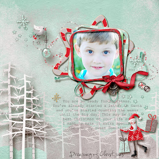 Have you started dreaming of Christmas yet? Dominic has! I was so pleased to see this kit come out… AnnaBV Designs is releasing a new kit today at ScrapOrchard called Letter to Santa. I love this color palette and it some truly adorable elements. I had fun with this one!